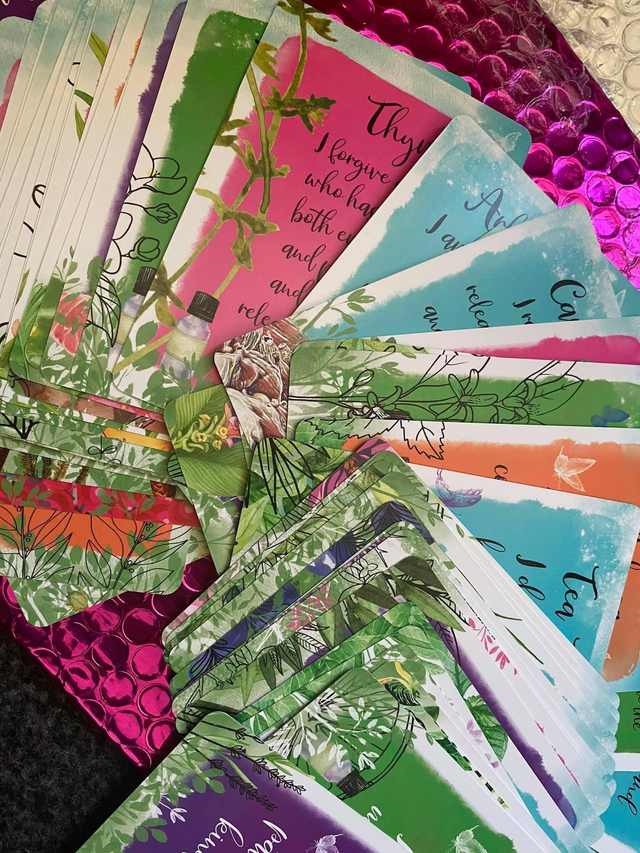 The cards that you draw will match your energetic vibration and guide you in using Magic Oils in various ways. I believe that essential oils are magic because they have been used for thousands of years as natural remedies. The Mantras that you see on each card are positive affirmation that has been powerfully aligned to the essential oils' emotional and spiritual properties, intending to help you rebalance your energy and support your mind, body, and spirit.